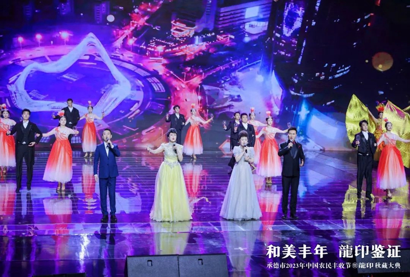 整場慶典以記錄承德人民美好生活、美景美食、農(nóng)業(yè)碩果的視頻《承德十二時辰》拉開帷幕。承德市人民政府副市長崔萬峰率先上臺致辭,并對承德市2023年中國農(nóng)民豐收節(jié)暨龍印秋藏大典的召開表示熱烈祝賀。