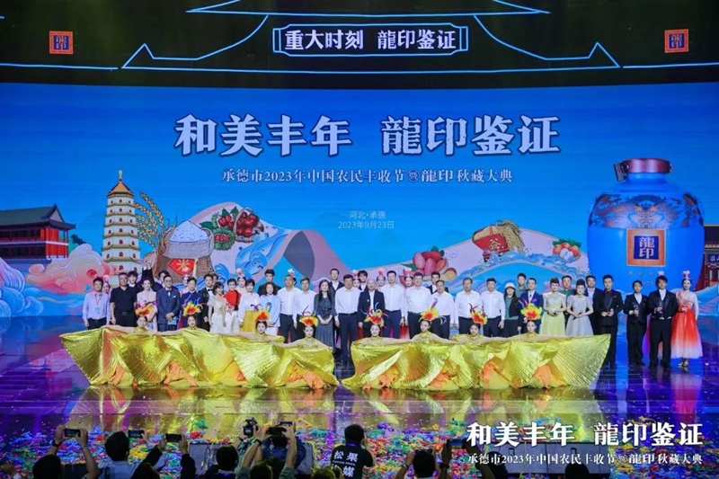 禮贊豐收年,共品龍印酒。9月23日,由承德市人民政府、河北廣播電視臺(集團)聯(lián)合主辦;由承德縣人民政府、承德市農(nóng)業(yè)農(nóng)村局、承德市體育局協(xié)辦;由承德縣農(nóng)業(yè)農(nóng)村局、河北板城酒業(yè)、河北廣電廣告有限責(zé)任公司承辦的承德市2023年中國農(nóng)民豐收節(jié)暨龍印秋藏大典在承德市奧體中心圓滿落下帷幕。板城酒業(yè)駕起卓越追求的時代巨輪,乘歷史文脈之槳,掌匠心傳承之舵,揚帆起航,再次譜寫龍印“秋藏大典”品牌文化IP的時代篇章。
