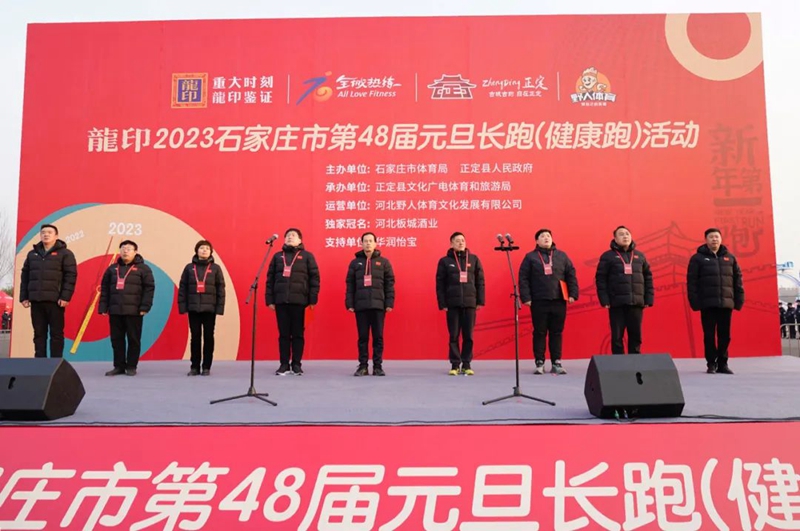 儀式現(xiàn)場(chǎng),石家莊市體育局黨組書(shū)記、局長(zhǎng)任維維宣布活動(dòng)開(kāi)始,正定縣委副書(shū)記、縣長(zhǎng)王立永為活動(dòng)致辭,奧運(yùn)會(huì)冠軍、石家莊市運(yùn)動(dòng)員鞏立姣宣讀全民健身倡議書(shū)。河北省體育局群體處處長(zhǎng)馬金亮,石家莊市體育局副局長(zhǎng)吳麗艷,正定縣委常委、宣傳部長(zhǎng)張明星,正定縣人民政府副縣長(zhǎng)王素剛,河北野人體育文化發(fā)展有限公司總經(jīng)理李桐出席了活動(dòng)。板城酒業(yè)銷(xiāo)售常務(wù)副總經(jīng)理許樹(shù)鋼出席活動(dòng),并與各位領(lǐng)導(dǎo)共同為活動(dòng)鳴笛發(fā)令。