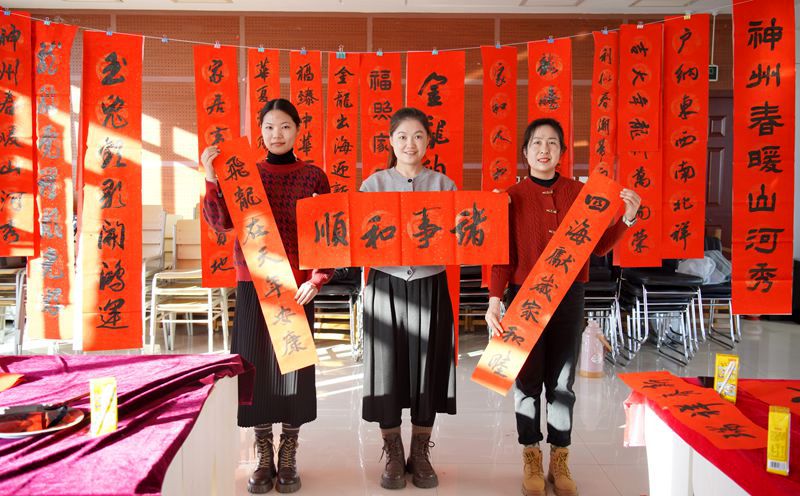 春聯(lián)、“福”字不僅裝點了各家各戶的門楣,營造了濃濃的新春氣氛,也更好地弘揚了中華民族的優(yōu)秀傳統(tǒng)習俗,為新的一年寄托“諸事和順”的美好祝福。