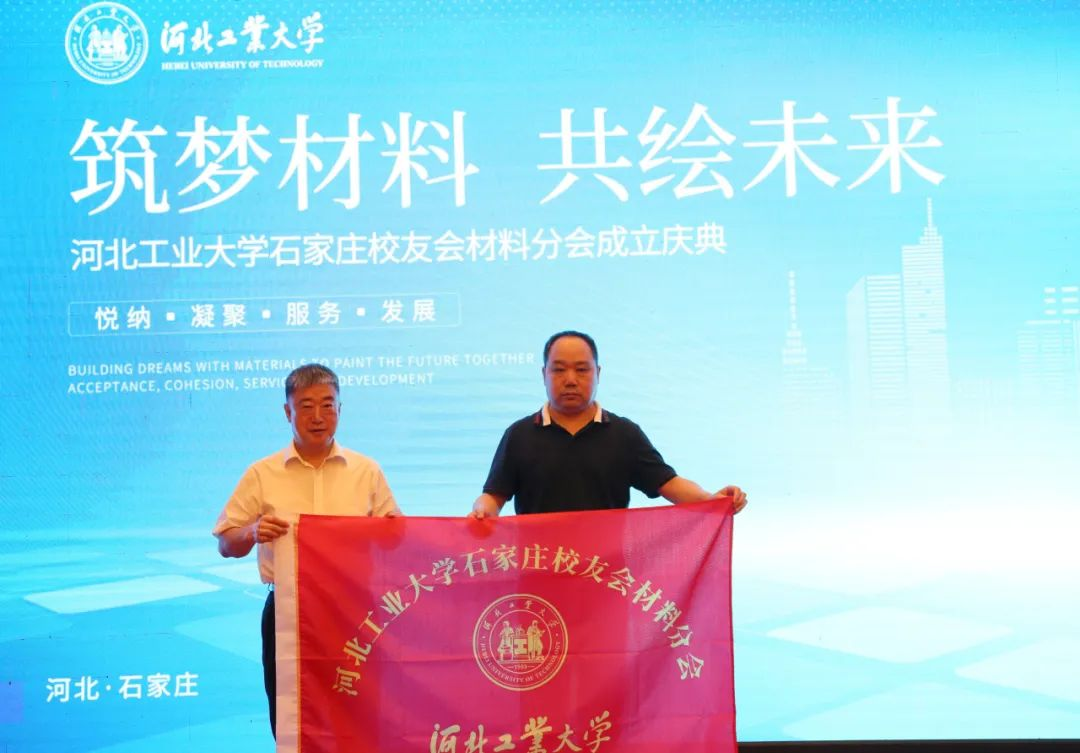 河工大石家莊校友會(huì)韓杏軍會(huì)長(zhǎng)為材料分會(huì)會(huì)長(zhǎng)唐永忠授旗