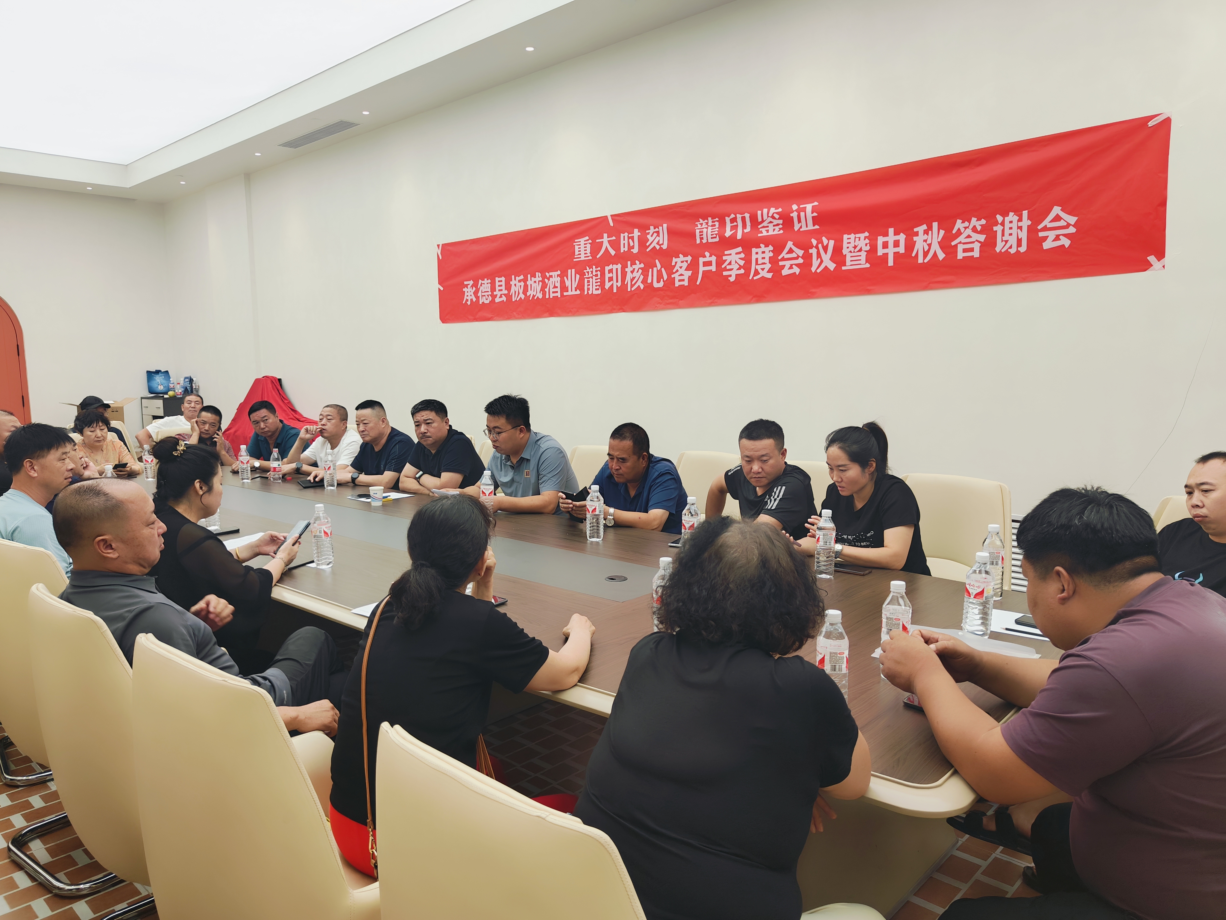 8月31日,承德縣板城酒業(yè)龍印核心客戶季度會議暨中秋答謝會圓滿落幕,本次會議圍繞龍印與56和順產(chǎn)品的市場銷售動作事項展開研討,對戰(zhàn)略落地與價格管控等政策進(jìn)行宣貫,以期打贏下半年度市場銷售關(guān)鍵戰(zhàn)役。出席本次活動的領(lǐng)導(dǎo)有:承德戰(zhàn)區(qū)縣區(qū)龍印部區(qū)域經(jīng)理陶景奇、承德縣龍印部業(yè)務(wù)經(jīng)理郭俊杰及承德縣龍印部業(yè)務(wù)團(tuán)隊,同時承德縣經(jīng)銷商、團(tuán)購商及相關(guān)終端店負(fù)責(zé)人出席本次活動。