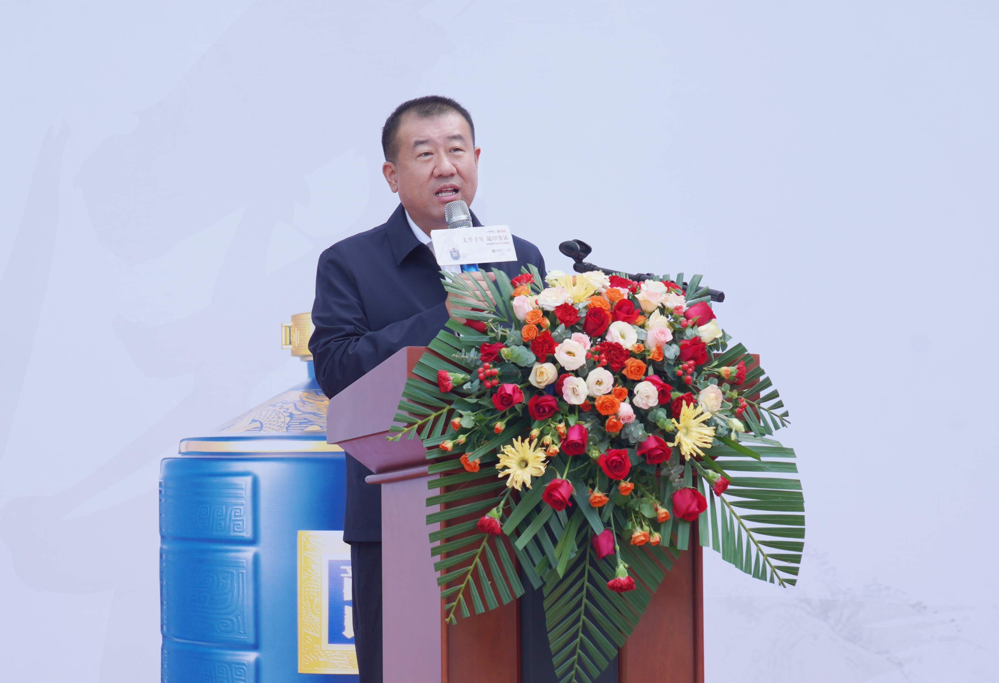 板城酒業(yè)黨委書記、總經(jīng)理張春生發(fā)表講話,書畫藝術(shù)歷史悠久,源遠(yuǎn)流長(zhǎng),是中華民族的文化瑰寶,在弘揚(yáng)民族精神,振興民族文化和滿足人民群眾日益增長(zhǎng)的精神文化需求方面發(fā)揮著重要作用。
