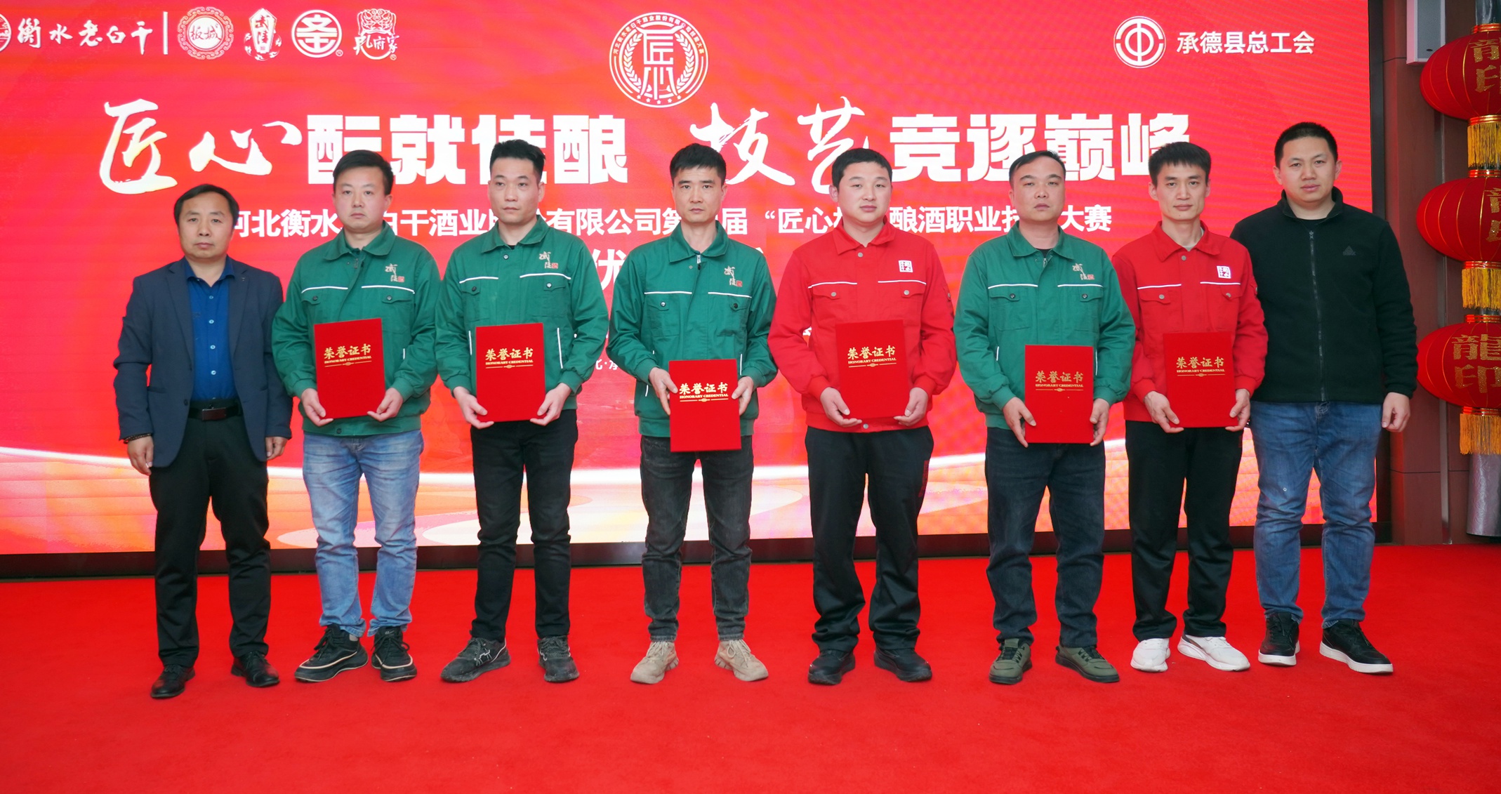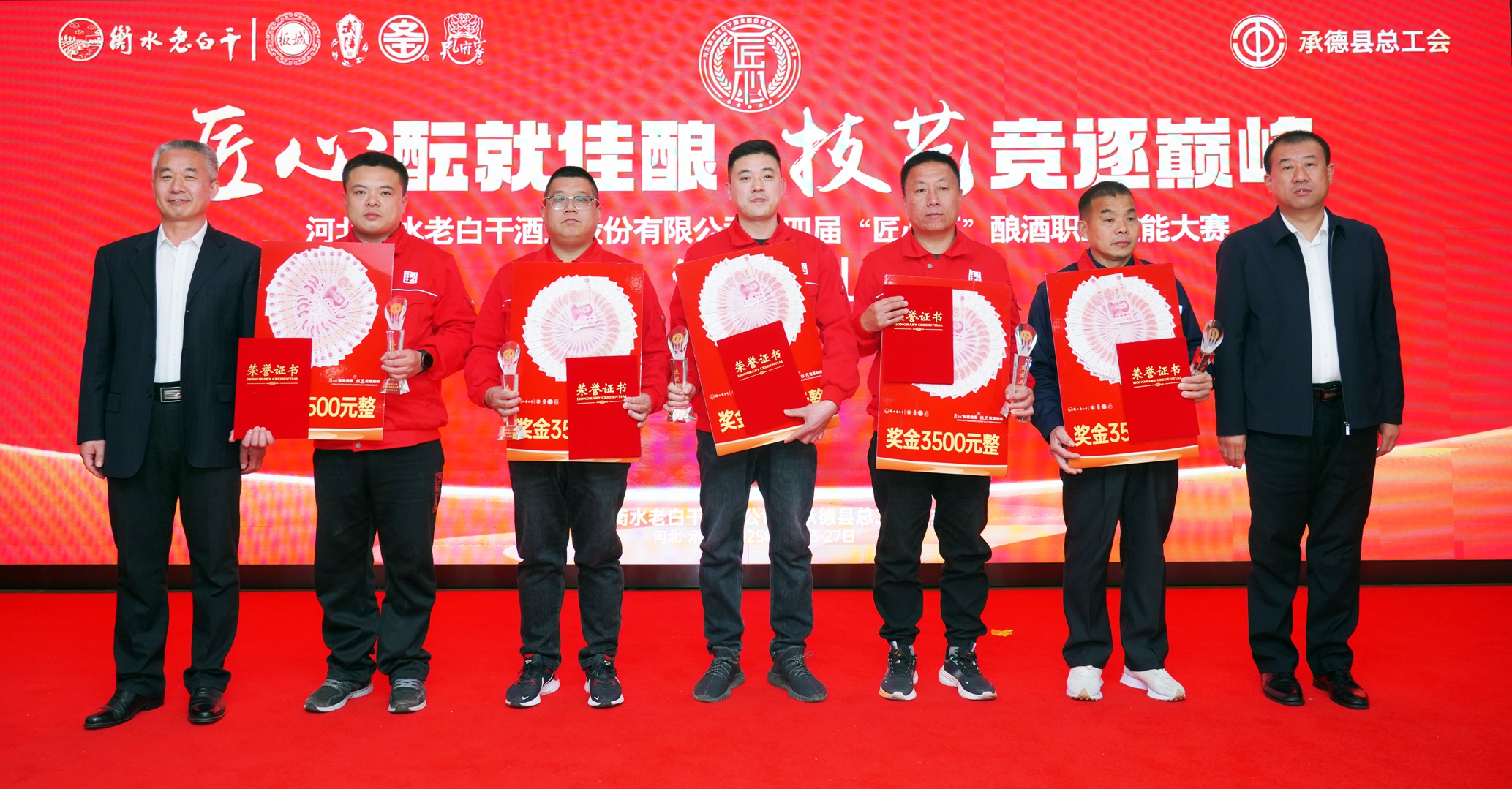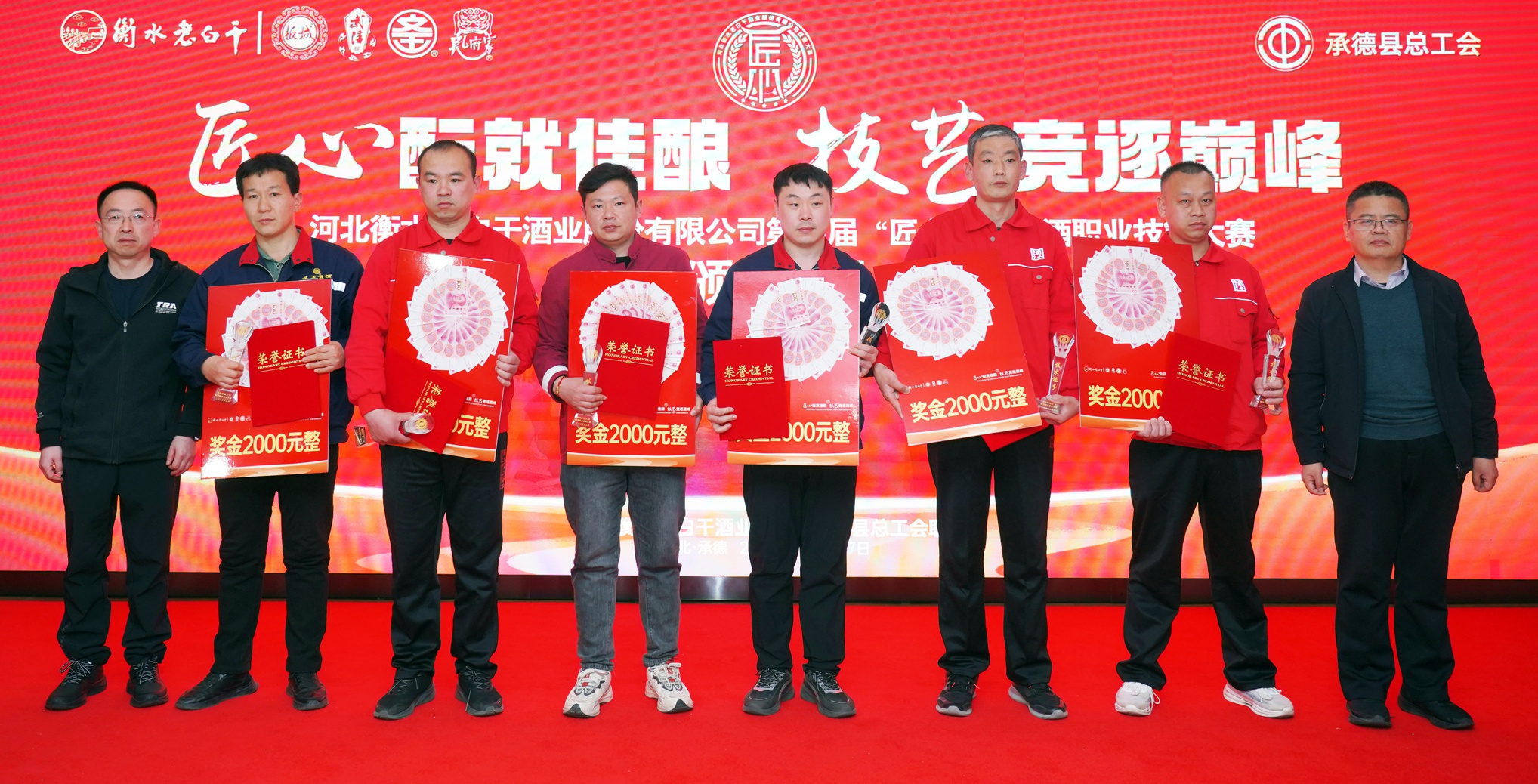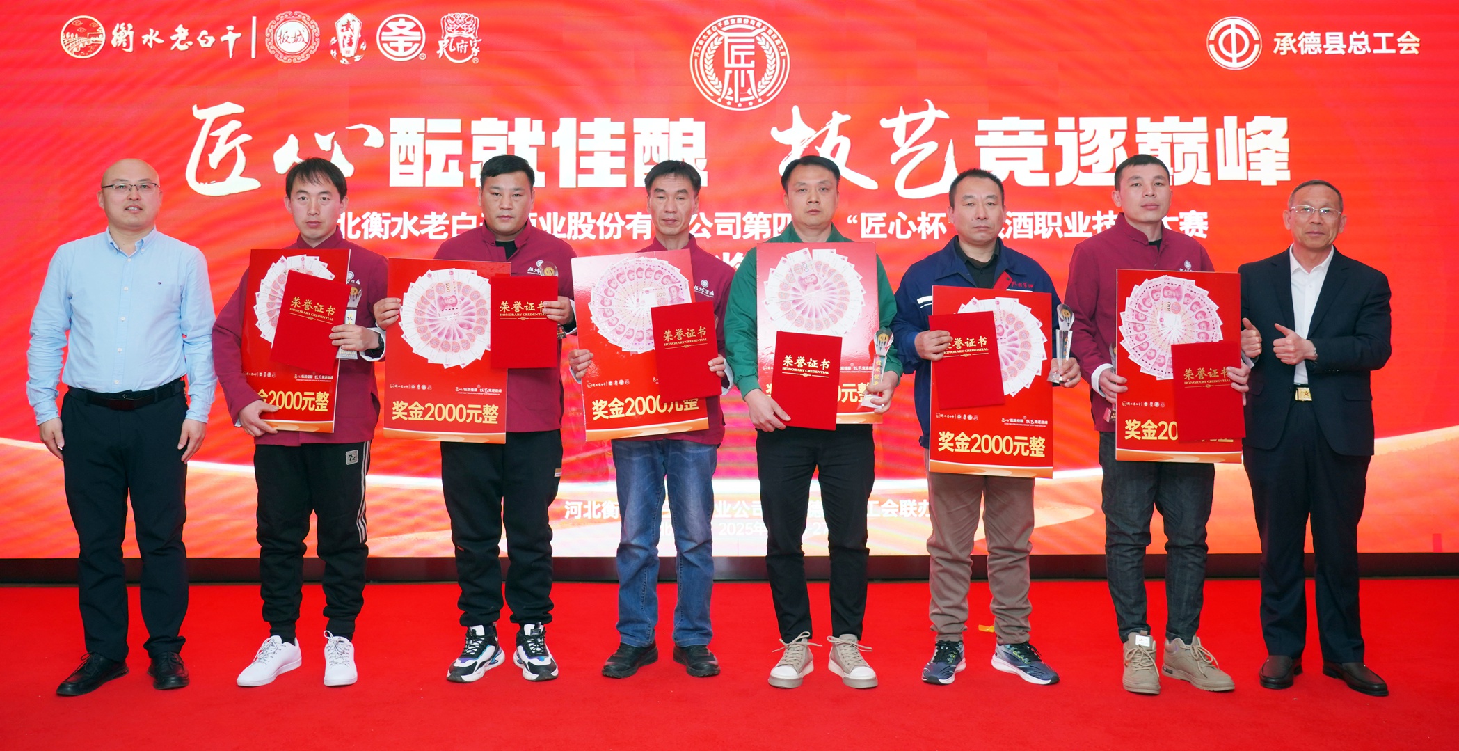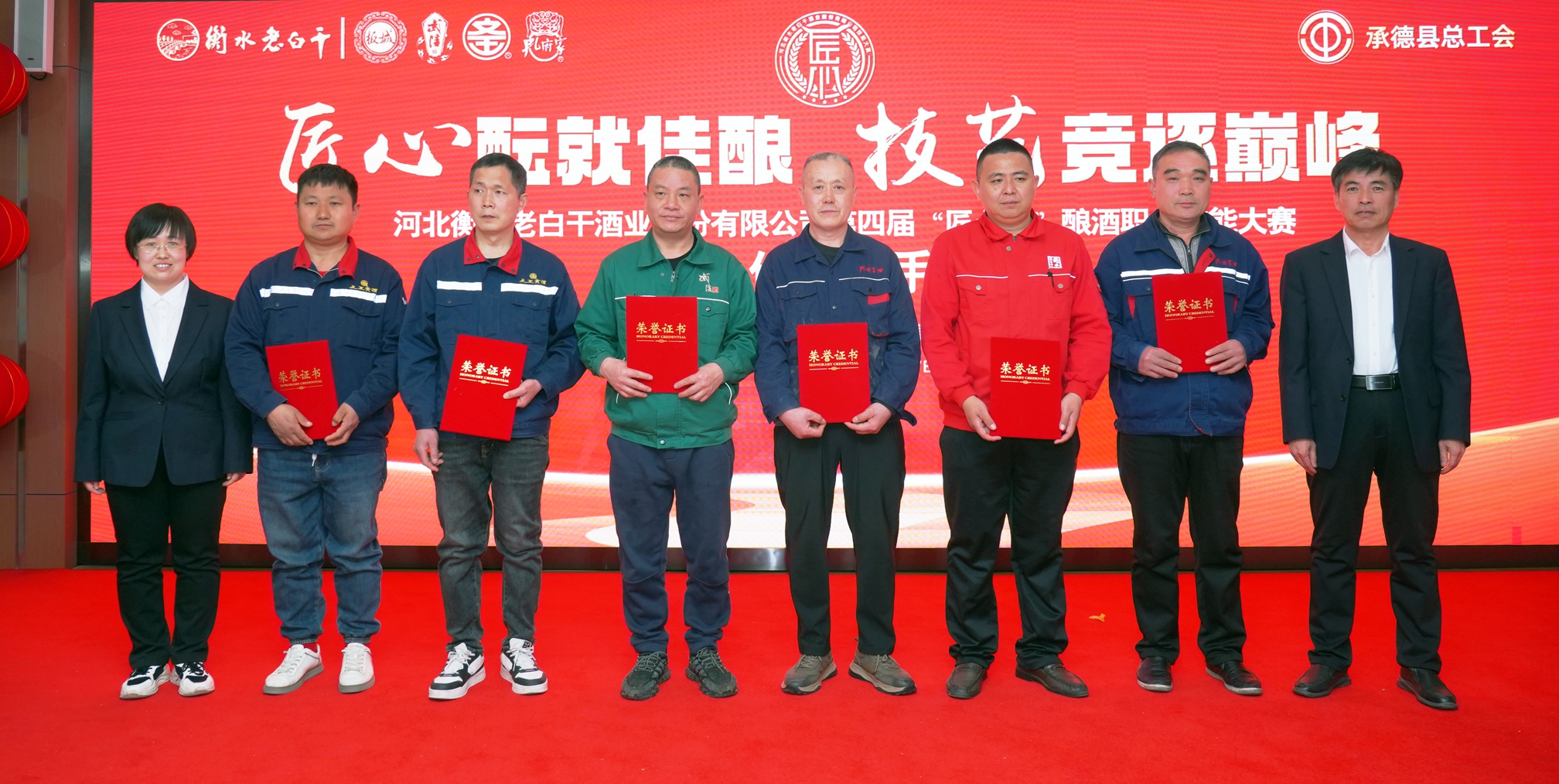 在活動閉幕式上,承德縣總工會黨組書記、常務(wù)副主席溫明忠,衡水老白干酒業(yè)公司副董事長張煜行,板城酒業(yè)黨委書記、總經(jīng)理張春生,衡水老白干酒業(yè)公司工會副主席孔衛(wèi)東,板城酒業(yè)生產(chǎn)總經(jīng)理趙志剛,文王酒業(yè)生產(chǎn)總經(jīng)理孫偉,孔府家酒業(yè)生產(chǎn)總經(jīng)理顏世昕,武陵酒業(yè)技術(shù)總監(jiān)張福艷,衡水老白干酒業(yè)公司技術(shù)中心副主任王新磊,以及各公司的參賽選手、裁判、領(lǐng)隊(duì)及相關(guān)部門負(fù)責(zé)人出席活動。