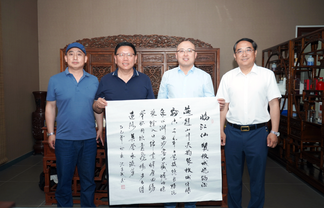 訪問期間,沈重武副會長現(xiàn)場揮毫潑墨,向板城酒業(yè)贈送書畫作品《臨江仙·贊板城燒鍋酒》,表達了其對板城酒業(yè)三百多年不間斷傳承的國家級非物質(zhì)文化遺產(chǎn)老五甑釀造技藝與“一店燒鍋兩朝御賜,乾隆妙對嘉慶天章”深厚歷史的稱贊。