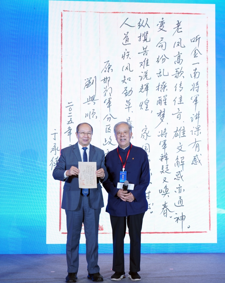 金一南教授演講結(jié)束后,現(xiàn)場觀眾紛紛表示,這場思想盛宴讓人受益匪淺。原邯鄲市委常委、軍分區(qū)政委劉興順深受打動,即興賦詩一首相贈,將會場氣氛推向高潮。