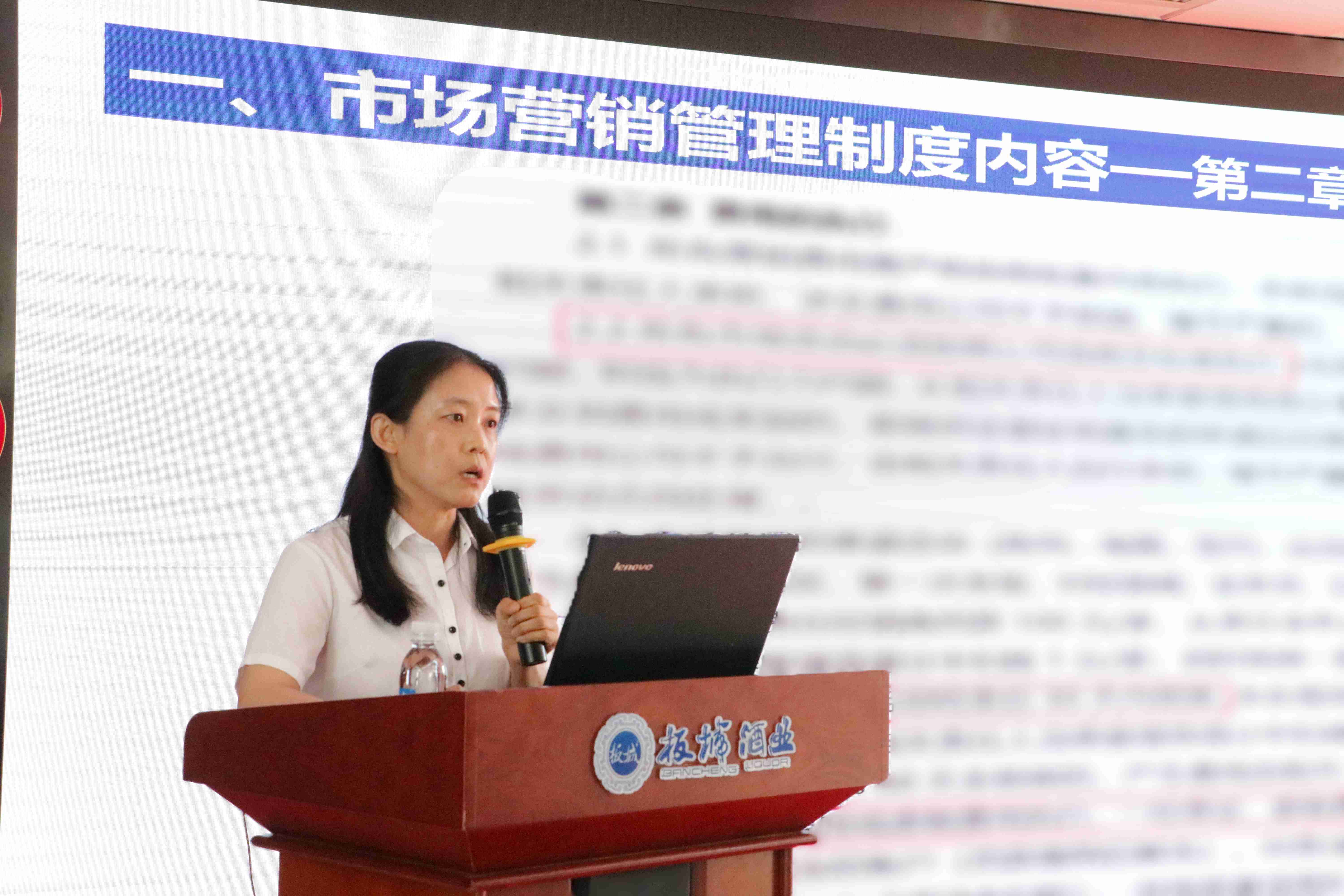板城酒業(yè)營(yíng)銷(xiāo)管理部主管金百靈講解公司規(guī)章制度,督促大家共同營(yíng)造風(fēng)清氣正的工作氛圍,提升公司資源的投入效能,建立良性有序的市場(chǎng)秩序,堅(jiān)決保障公司戰(zhàn)略有效落地。