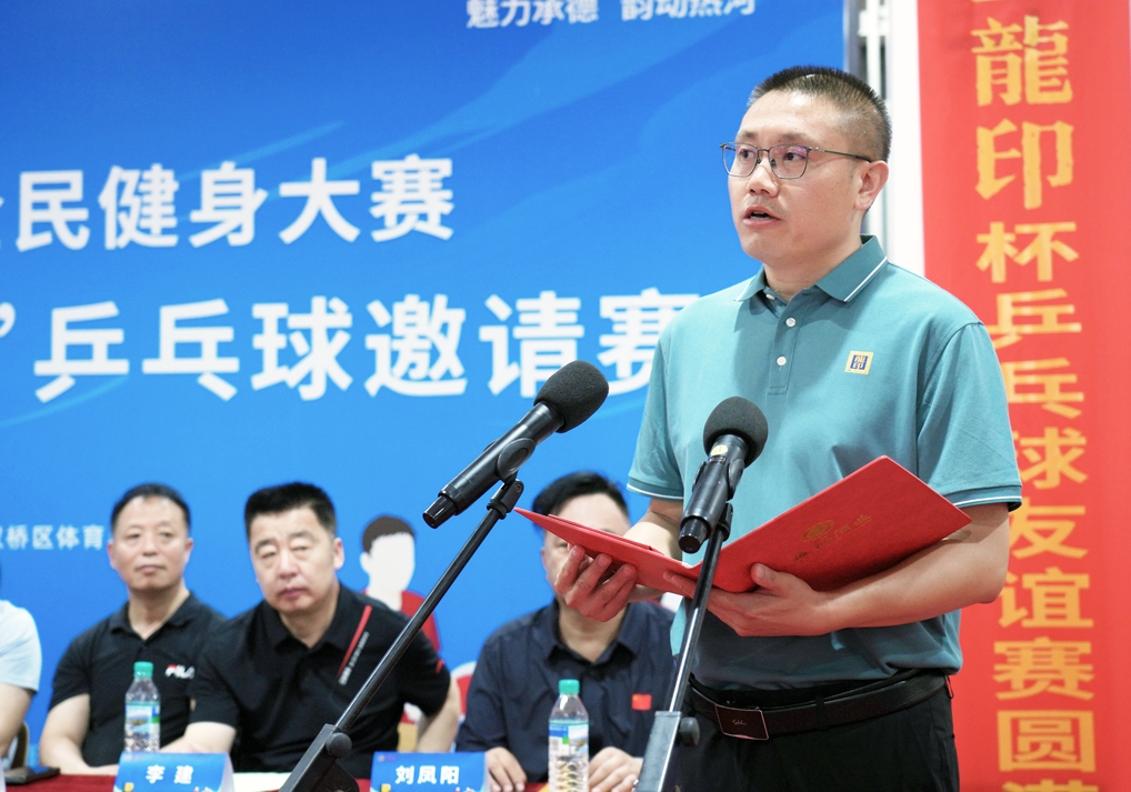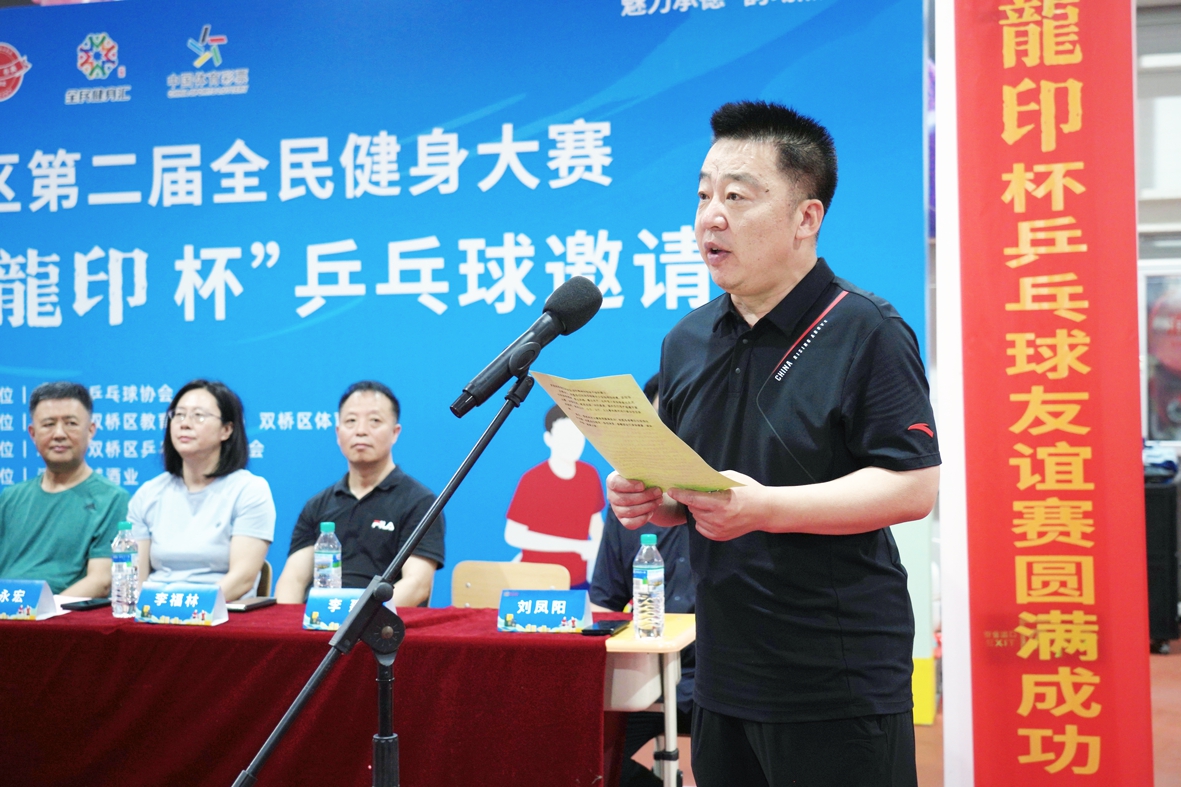 雙橋區(qū)教育和體育局局長李建致辭,他講到:“舉辦此次乒乓球賽是為廣大市民搭建了健身平臺,為六省的乒乓球運動員提供了相互交流的機會,也是推動我區(qū)乒乓球運動發(fā)展,滿足我區(qū)人民群眾健身、健康需求的重要舉措,希望大家能積極享受比賽,感受體育魅力。”