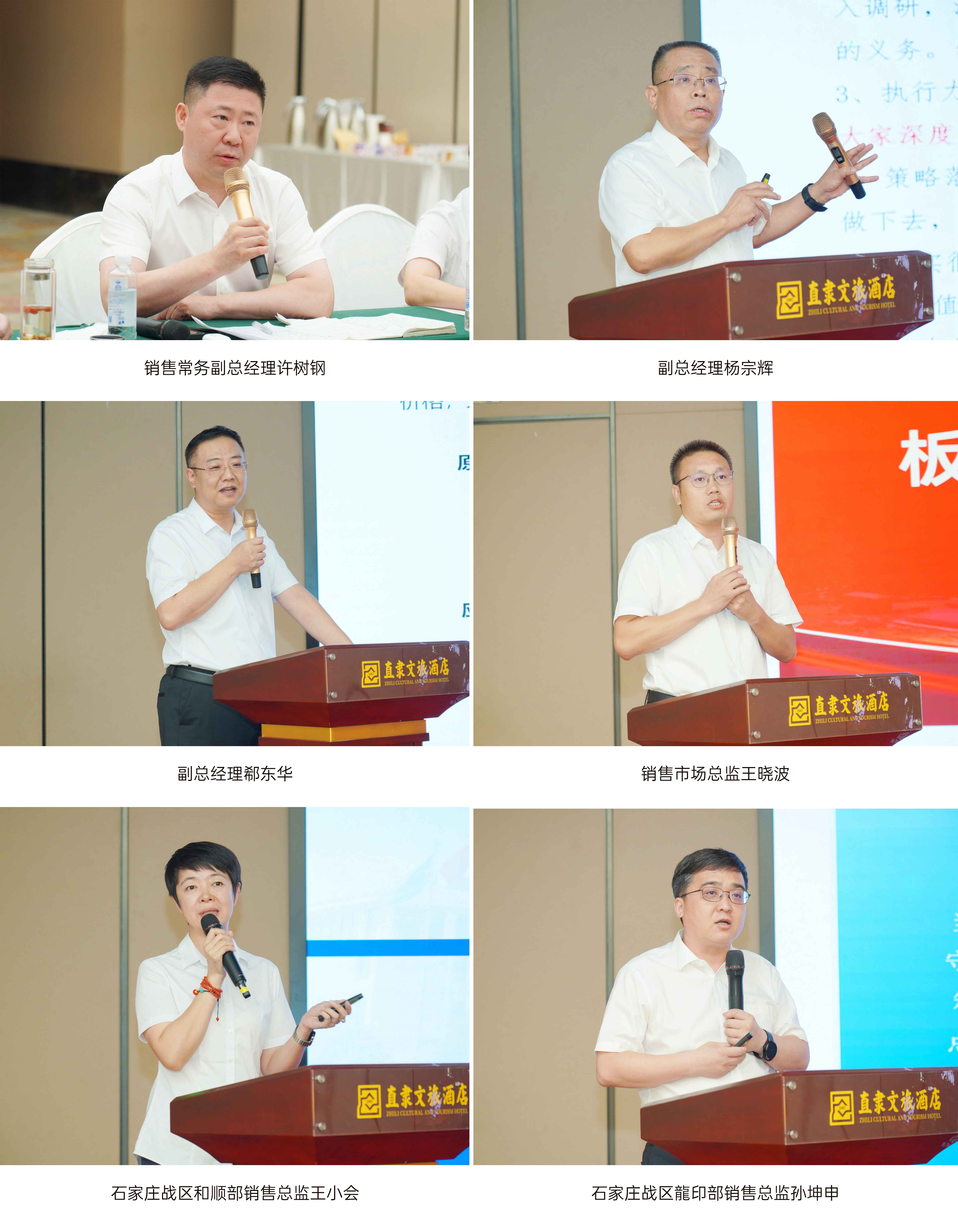 銷售常務(wù)副總經(jīng)理許樹鋼、副總經(jīng)理楊宗輝、副總經(jīng)理郗東華、銷售市場總監(jiān)王曉波、石家莊戰(zhàn)區(qū)和順部銷售總監(jiān)王小會、石家莊戰(zhàn)區(qū)龍印部銷售總監(jiān)孫坤申等領(lǐng)導(dǎo)分別針對分管區(qū)域進(jìn)行全面分析與解答,并提出了相關(guān)營銷策略與戰(zhàn)術(shù)。
