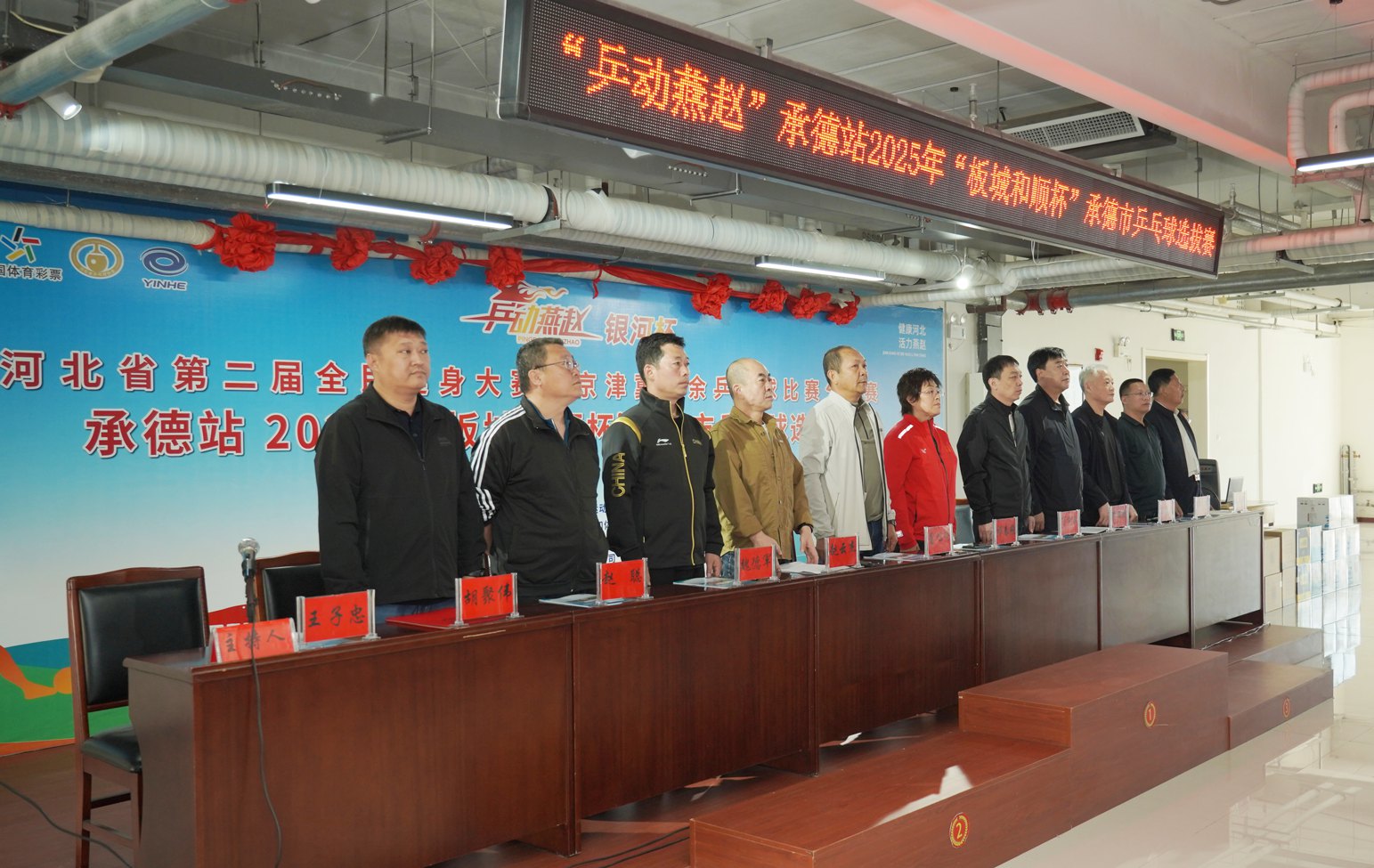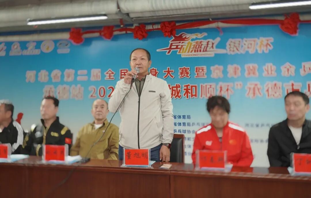 承德市政協(xié)副主席、工商聯(lián)主席、承德縣乒協(xié)總顧問董旭明登臺宣布比賽正式開幕。