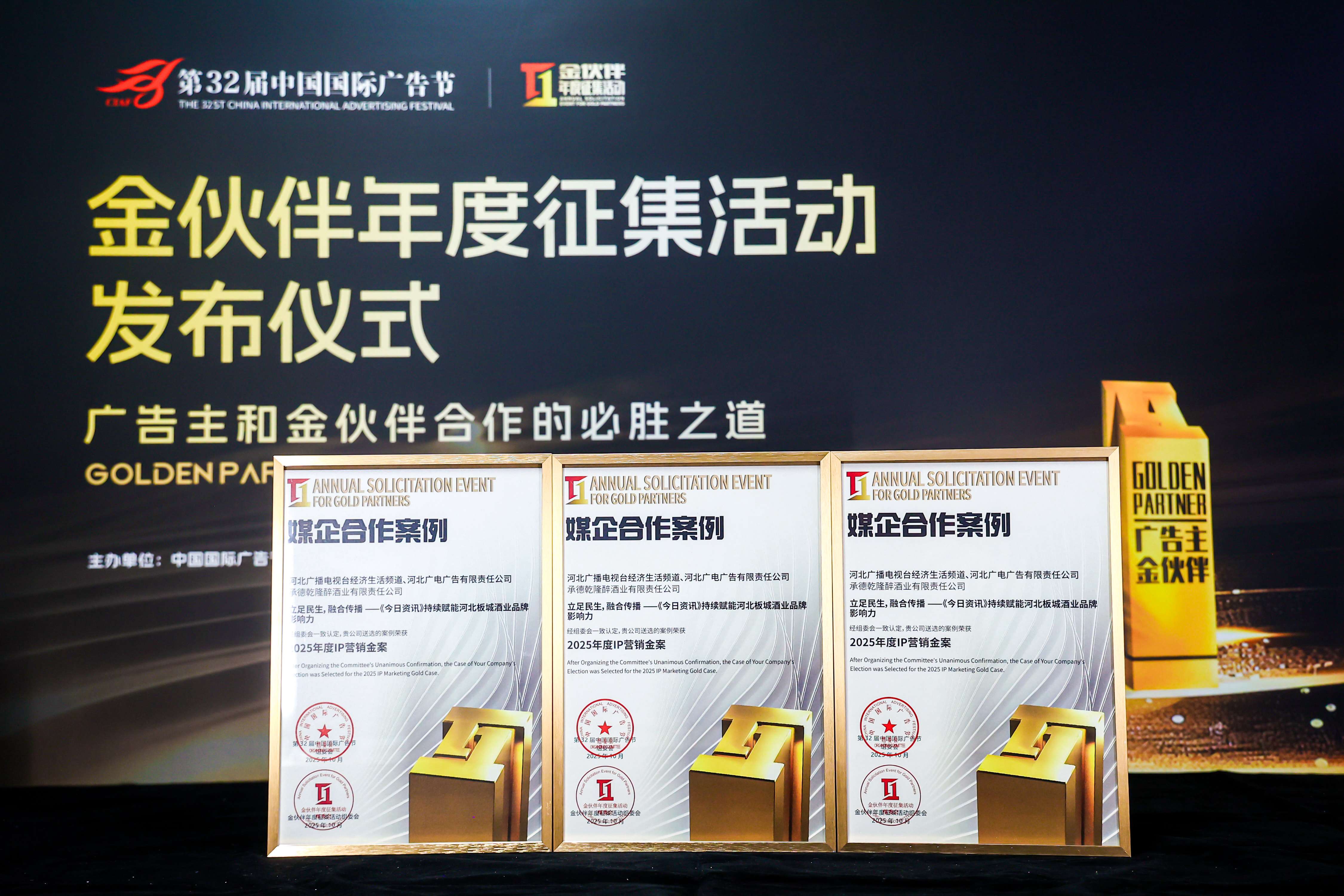 板城酒業(yè)與河北經(jīng)濟(jì)生活頻道合作的“立足民生,融合傳播——《今日資訊》持續(xù)賦能河北板城酒業(yè)品牌影響力”案例榮獲2025年度IP營(yíng)銷(xiāo)金案。